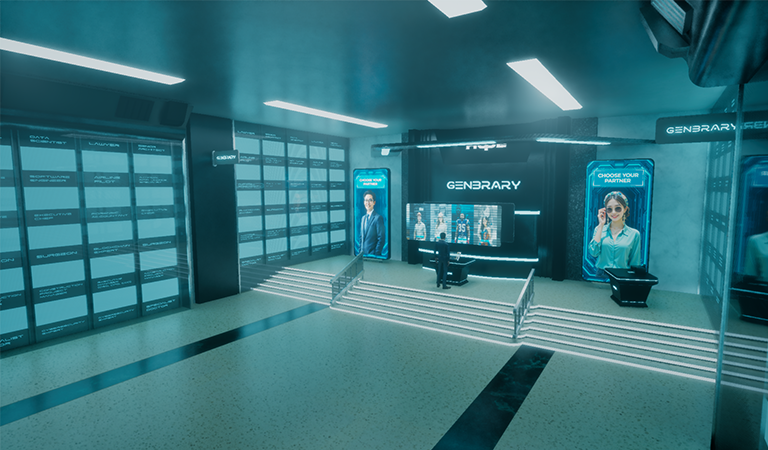 Your robot avatar steps into the GENBRARY Room as a cinematic introduction unfolds around you, explaining how this space works and the paths available to begin your search. Once control returns to you, three distinct choices appear each with its own rhythm and tone, each leading toward the same destination: partnership.