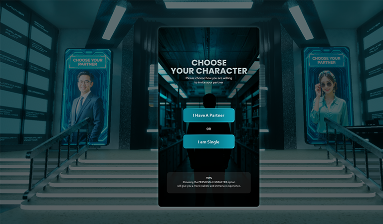 If you already have a partner outside the game, Invite by Code lets you join them immediately. Enter their unique room code, and your avatars meet inside a private chamber designed for focused conversation and agreement.