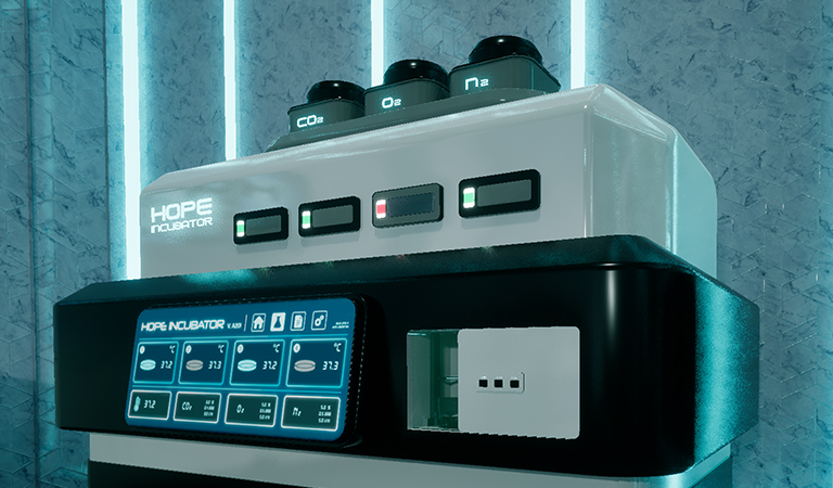 Under the gentle guidance of Dr. Mayleen, you prepare to nurture this life in the Incusphere, a next-generation incubator designed to replicate the first critical days of growth. Every adjustment you make temperature, humidity, nutrient flow, oxygen balance carries meaning. Every moment of observation, every careful calibration, is an act of care. Here, life begins its first journey under your watchful eyes.
